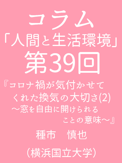 Vol.39 2026年5月 種市 慎也(横浜国立大学) 前回のコラムでは、成育環境としての課題、そしてこれからは「質」が求められる転換期を迎えていることを述べました。今回は、「窓を自由に開けられること」の意味について…